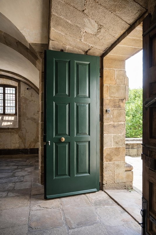 Restauración integral de una puerta de más de 300 años de antigüedad, realizada en madera maciza de castaño. La intervención se llevó a cabo respetando la estructura y los elementos originales, mediante limpieza, saneado, consolidación de ensambles, reparación puntual de piezas y recuperación de herrajes históricos. El acabado final protege la madera y realza su veta natural, manteniendo la pátina y el carácter propio de la pieza.