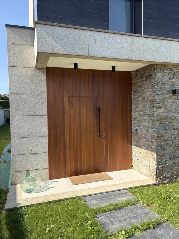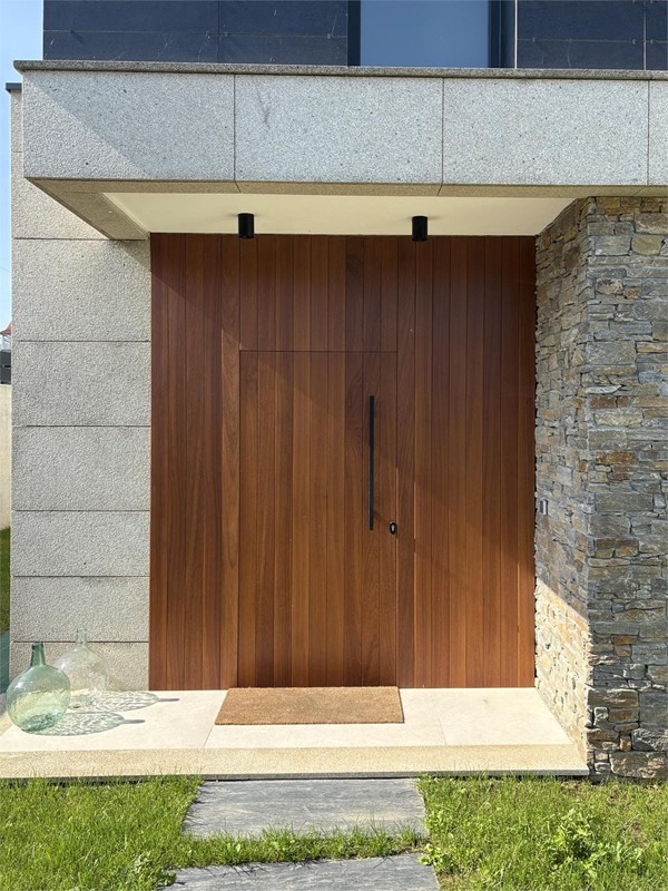 Puerta entablado iroko Ames - Puertas de Entrada