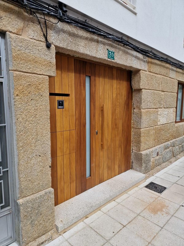 Puerta entablado iroko Silleda - Puertas de Entrada
